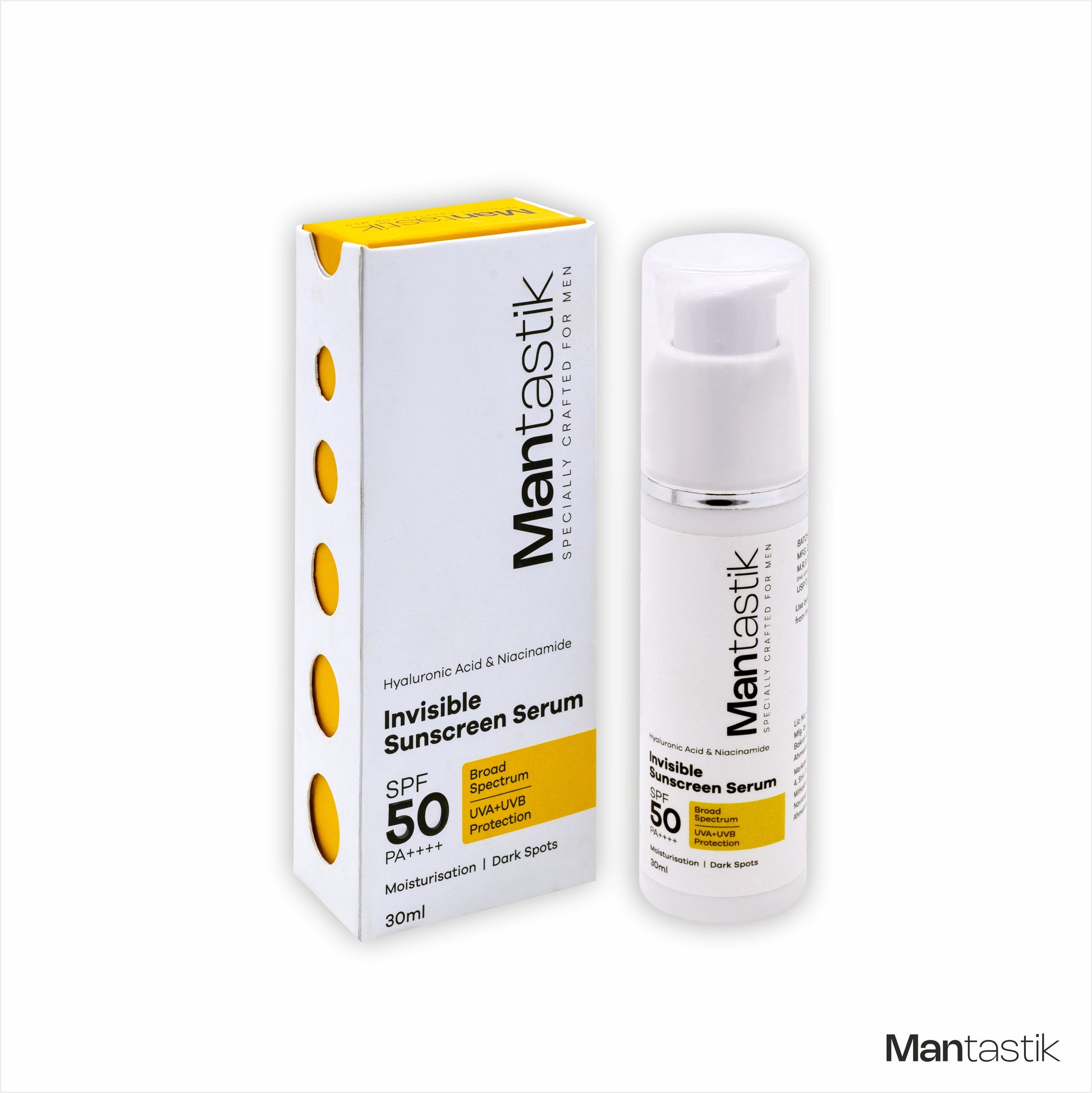 Experience the perfect blend of skincare and sun protection with our Invisible Sunscreen Serum SPF 50 PA++++. This lightweight, non-greasy serum is formulated with Hyaluronic Acid and Niacinamide to deliver superior hydration, fade dark spots, and protect your skin against harmful UVA/UVB rays. Designed specifically for men, it provides a matte finish, making it ideal for daily use without leaving a white cast.